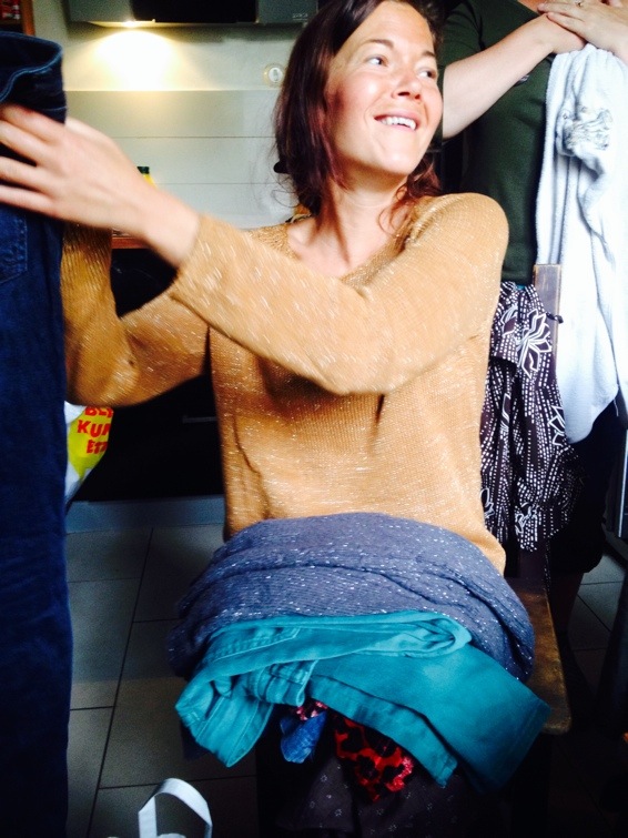 Massa mat, gott vin och härligt sällskap. Sara dök upp med lite kläder och jag roffade åt mig. Kaos är ständigt närvarande, men det är en del av charmen!