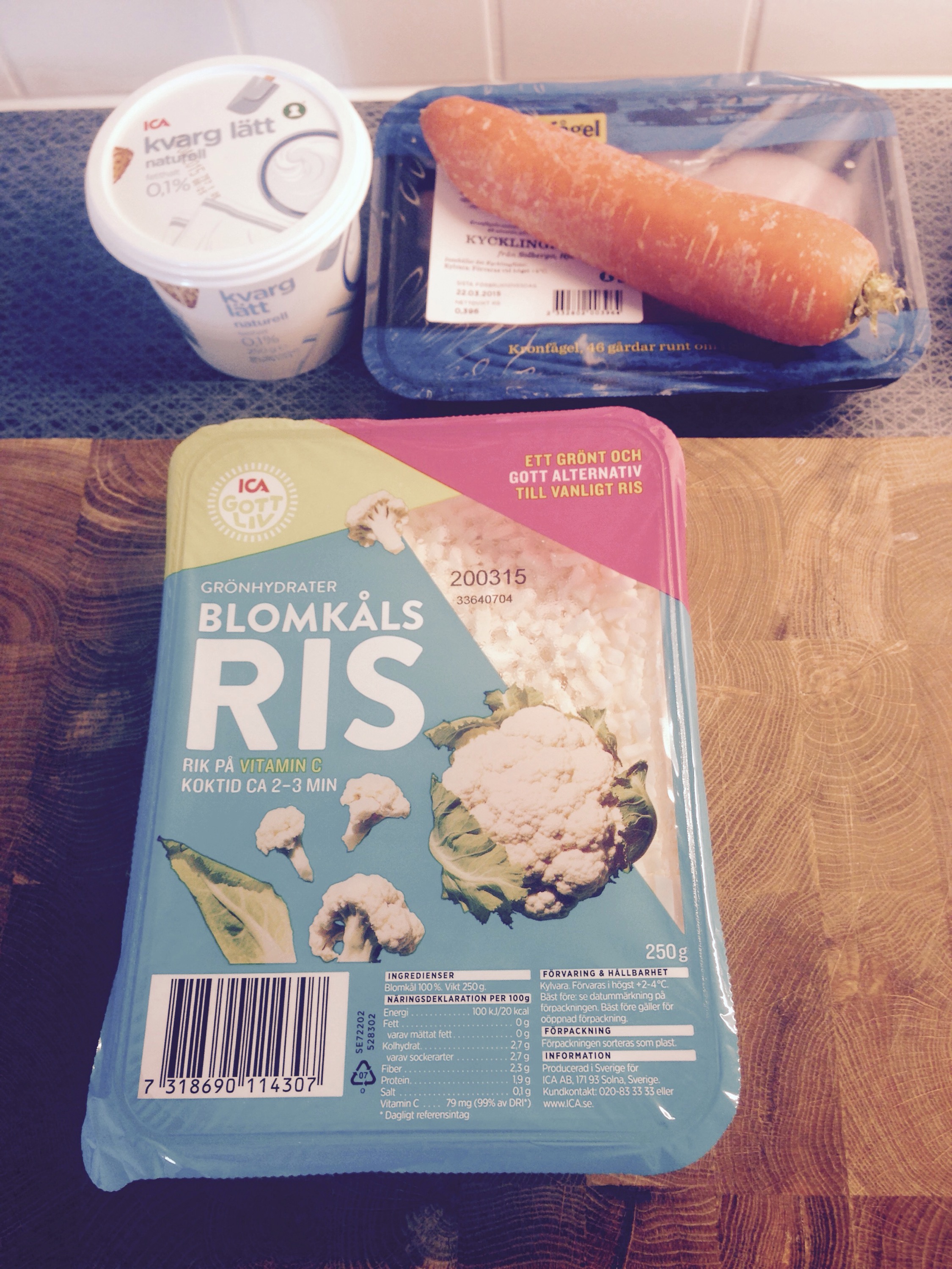 I går kväll lagade jag kycklingfilé med blomkålsris. Bra alternativ till vanligt ris, och det smakar minst lika gott. Finns på Ica för runt en tjuga, betydligt smidigare än att riva själv då det ofta hamnar blomkål precis överallt.