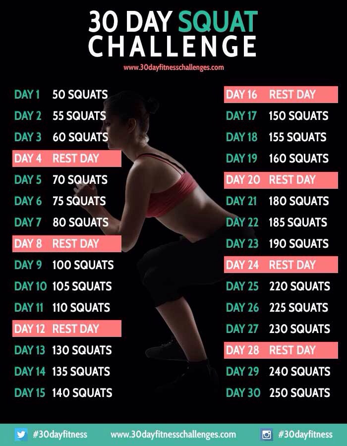 Jag har ett knep – varje gång jag går på toaletten gör jag 10 squats. Om jag dricker mycket blir det kanske 8-10 gånger per dag, vilket innebär 80-100 squats! En annan metod, för att få ihop sina dagliga squats, är en Squat Challange. Ni får lite inspiration nedan!