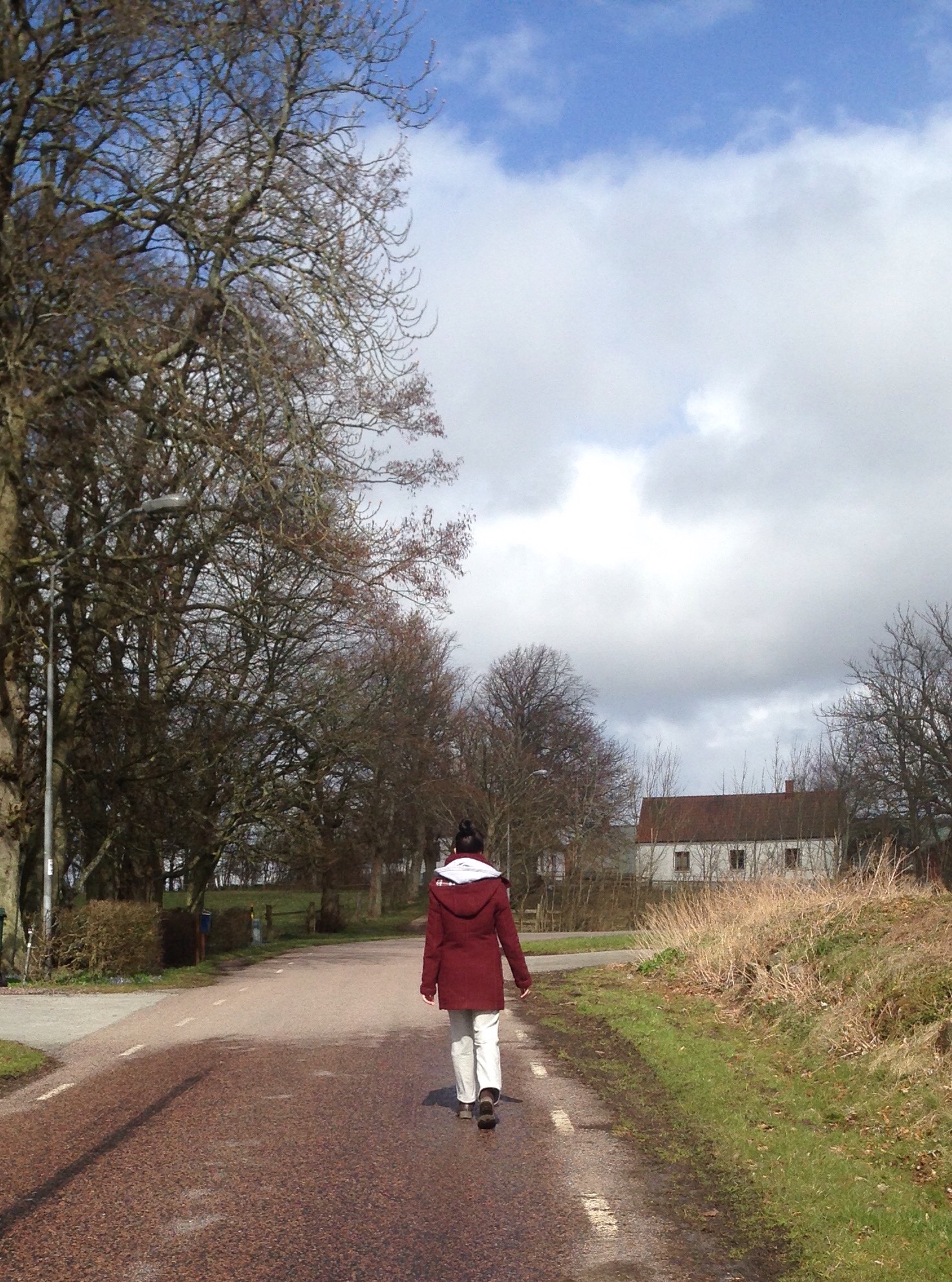 Är ute på landet hos mamma i dag. Vädret pendlar mellan sol, regn och hagel. När jag är här promenerar jag varje dag, och när det är varmare ute brukar jag springa till närmsta by och tillbaka – totalt 6 km.