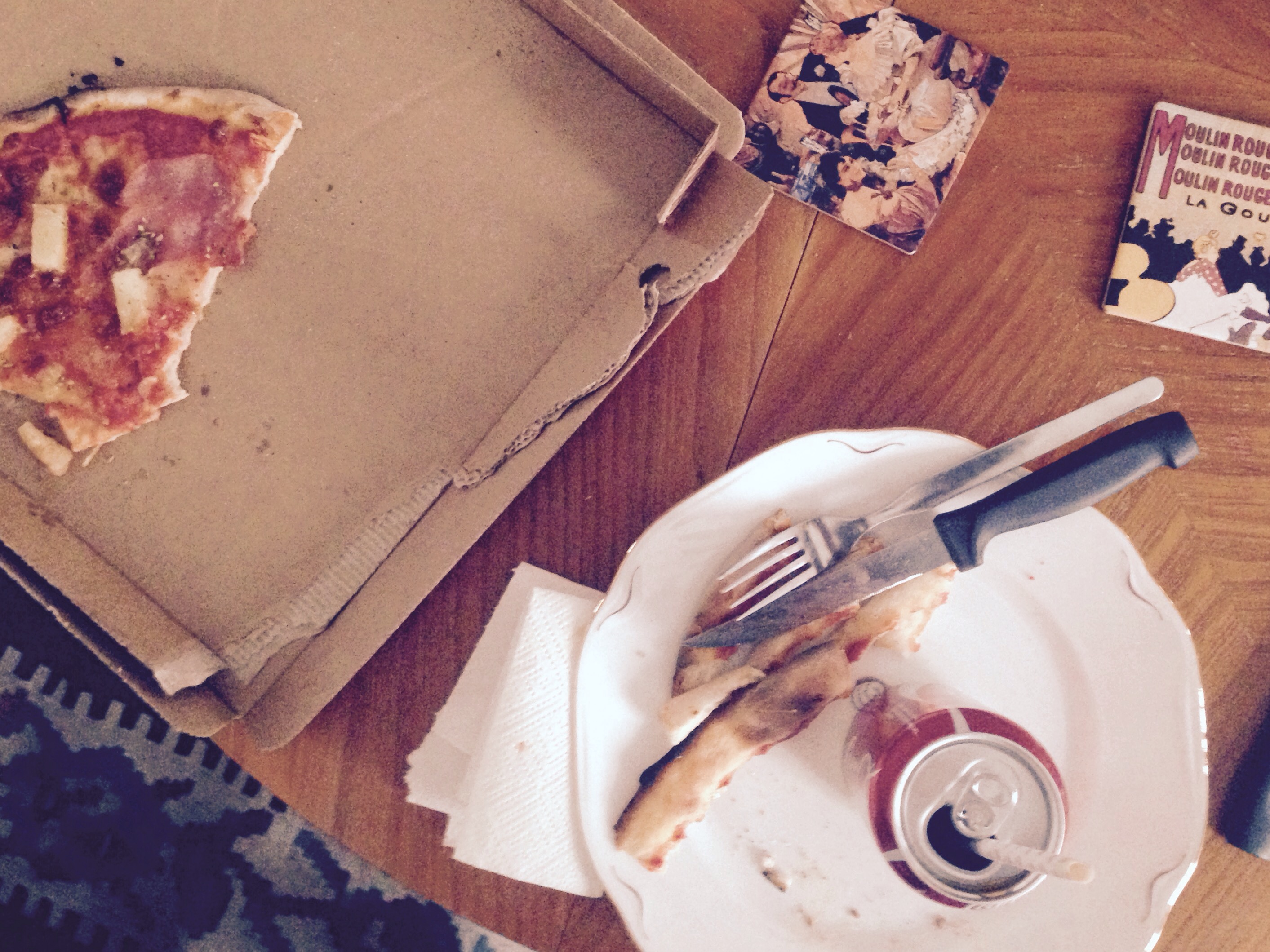 Efter tårta, kladdkaka och kakor på kalas fortsatte jag med pizza och Cola när jag kom hem. Ibland blir jag sjukt sugen på skräpmat, och då äter jag det. Dock blir man inte vidare pigg av sån mat, så vi är en liten hög sega människor som ligger och softar i soffan ..