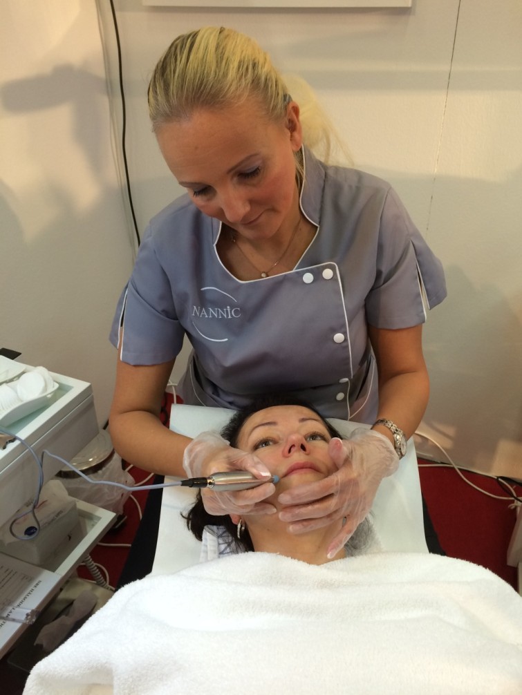 Balans var i fokus på Allt för hälsan mässan i år, lagom av allt i fysisk aktivitet gärna grön (utomhus), mental hälsa, avslappning och sunda gröna kosttillskott. Förutom en hel del träningsaktiviteter så kunde man även prova på en del behandlingar och provsmaka allt ifrån choklad, nötter, bönpasta, till alla möjliga energidrycker. En av mina väninnor provade på att göra en NBE micro needling behandling. Det är ett duo koncept som först peelar huden mekaniskt för att huden sedan ska ta upp högkoncentrerade serum med sin specialutvecklade mikrokanalteknologi. IMG_2275[1]