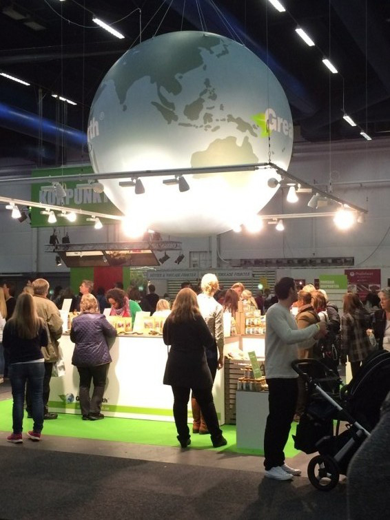 För huden var det också grönt som gällde, ekologisk hudvård. Kände dock att dessa montrar försvann lite bland många andra större aktörer. Roligt var att det fanns pionjärer som Marja Entrich på plats (Marja själv gick bort 1999). Tony Irving har gått över från Botox till så kallad naturlig hudvård och om det berättade han på sitt seminarium, ett av ca 200 stycken. Rent generellt var det svårt att höra vad som sas då det pratades på flera ställen samtidigt, lite rörigt och stökigt blev känslan. Eller som en annan kollega beskrev det hela – det känns som att vara på Kiviks marknad.