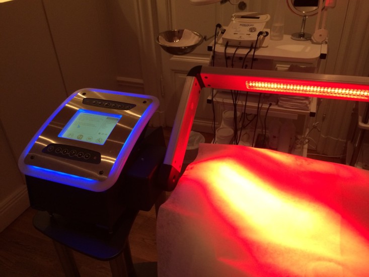 Man kan självklart inte få någon annan behandling i ansiktet just då, men händer och fötter går att få samtidigt. Självklart kan du passa på att få en frans och bryn färgning, när man endå ligger ner. Jag tycker nästan att det är meditativt att ligga under denna pendlande ”arm”. Tiden är olika beroende på vad som behandlas allt ifrån ca 10-30 minuter. Ljus i många olika former är bra för oss.