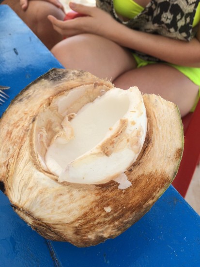 Jag brukar alltid sörpla i mig några kokosnötter men mest för att komma åt innehållet. Det är förhållandevis mjukt när man äter det färskt, men det gillar jag att tugga i mig. Själva kokossaften i nöten eller för den delen kokosvatten som man kan köpa här hemma är jag inte lika förtjust i.