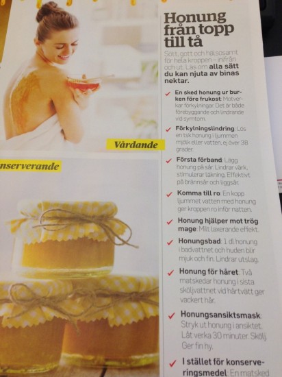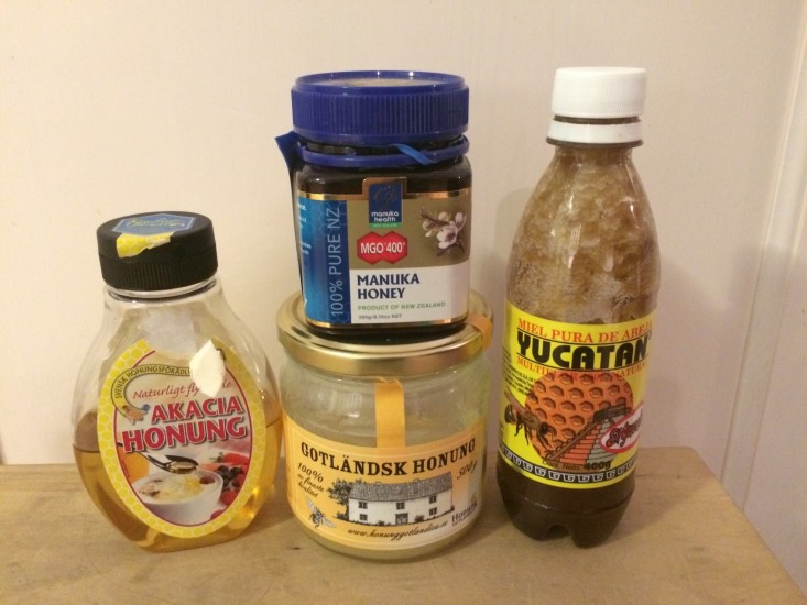 Honung har som sagt ett stort användningsområde, både för insidan och utsidan. Själv har jag alltid gillat honung av alla slag. Just nu har jag Acacia-, Yucatan-, Gotlänsk- och Manuka honung hemma. (och några till som inte får plats på bild, bl.a lokalproducerad honung från Ekerö).