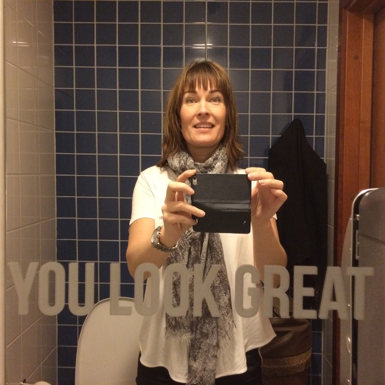 Väl i Örebro åt jag lite frukost och började förbereda mig för dagens ”framträdande”. Tog en sväng förbi damtoan precis innan det var dags för mig och min kollega Anneli. Blev riktigt glad av detta meddelande som stod på spegeln.