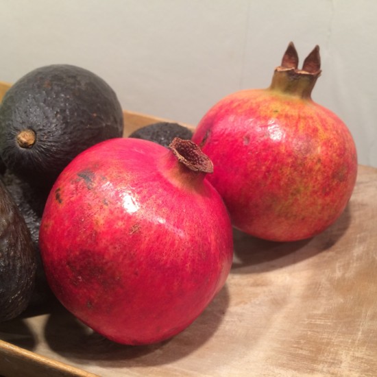 Avokadofrukten kan innehålla hela 30 procent omättat fett, men det vanligaste är att den innehåller ca 15 procent enkelomättat fett. Finns även mycket kalium som är nödvändigt för en normal hjärt- och muskelfunktion. Granatäpplet är en riklig källa till C-vitamin, folsyra och antioxidanter. Vackra, nyttiga och goda, vad mer kan man begära av en frukt. Så det blir nog en bit kyckling, kanske grillad på utgrillen och en sallad på,