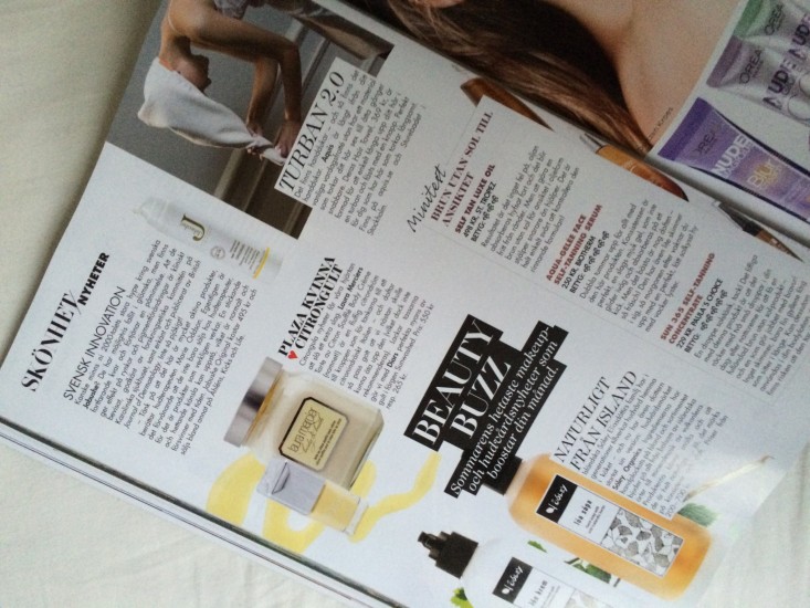 Rubriken är Svensk Innovation, och det är precis vad det är. Att den ger effekt på rynkor och pigmentförändringar är kliniskt bevisat. Det finns en hel del annat att läsa om också, bl.a. sommarens bästa SPF. Vill man fuska till sig färgen så finns det ytterligare ett reportage om Bronze Babes. Som sagt färg kan man få på många sätt.