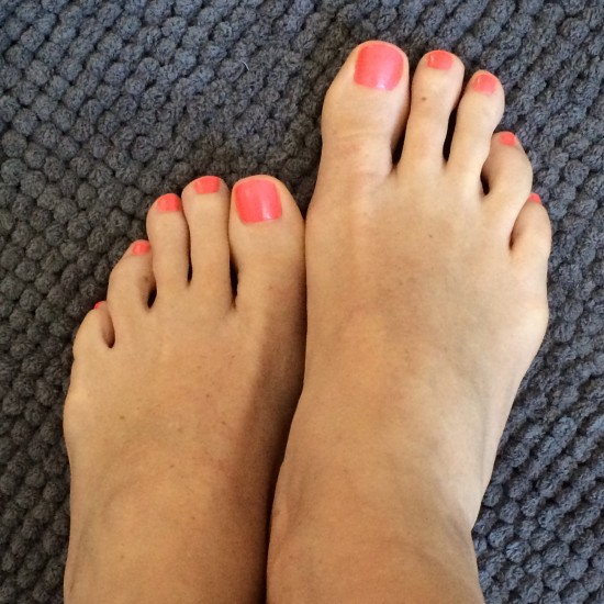 Hon avslutar med ett somrigt och glatt lack. Fötterna är nu lena, mjuka och väldoftande och jag blir så glad när ett gäng färgglada naglar möter min blick.