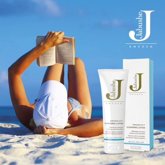 Både sol, svett, vindar och solskyddsfaktor gör att huden behöver hållas efter lite extra den här tiden på året. Lätt att huden får små plitor och utslag, så ta hand om den. En bra rengöring som ser till att tvätta rent din hud från krämer, svett, sand, SPF- krämer, makeup eller vad man nu för dagen kan tänkas ha i sitt ansikte är en bra investering. Effektivt men skonsamt tar Jabushes rengöring bort allt detta, dessutom är den för alla hudtyper (och åldrar). Så i sommar när jag har rest så har min rengöring från Jabushe gått runt till alla jag rest med då det  både är en renöring och aniktsvatten i en och samma produkt. Dessutom så tar den bort makeup, top- notch!