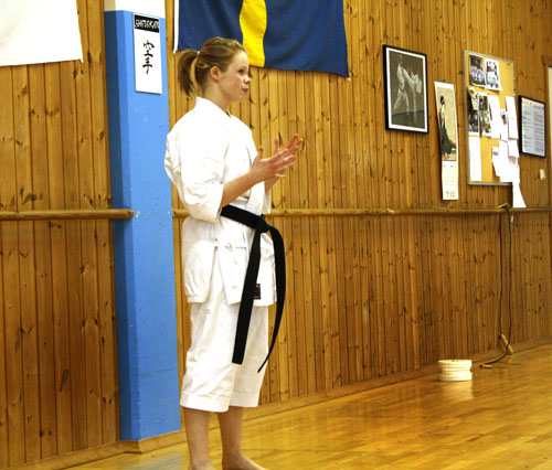 God morgon! Sitter här med mitt kaffe och ska strax köra. Jag ska ju vara tränare för ett endagarsläger och det ska bli så roligt! Det är första gången jag är tränare för ett läger så det blir spännande, och jag är lite stolt att jag ens blev tillfrågad, det är ganska stort. Coolt. Jag hittade en söt bild på karatens hemsida på lilla mig som 16-åring. Jag har haft något vi kallat kataträning eller tävlingsträning i snart sex år nu, det började med någon gång ibland men de senaste åren har vi kört varje vecka. Det är för dem som vill tävla och därmed träna lite extra. Väldigt uppskattat, och väldigt roligt måste jag säga! Att få se ungdomarna utvecklas så. När jag började så var det bara barn, alltså ingen över 11 år, men nu är alla som tränade då typ 15, lilla Nellie fyllde 16 igår men hon är fortfarande mitt katabarn, haha.
