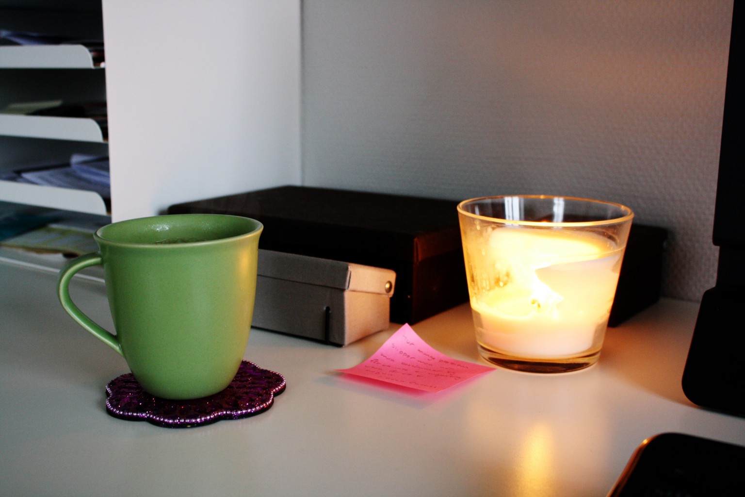 Här sitter jag och myser. Jag och Emil har ju en ganska stor lägenhet, en fyra med tvättstuga och förråd så vi klagar verkligen inte. Detta innebär att vi har ett kontor vilket jag finner som en väldigt stor lyx! Där kan man slänga in alla papper man inte vill se och det är tillåtet att det är lite stökigare än alla andra rum, för ett kontor ska vara fullt av papper och grejer. Jag har länge tyckt att vårt skrivbord var för litet för det var bara datorn som fick plats så fick man sitta vid bordet och skriva, inte så praktiskt. MEN mamma och pappa slängde ut sitt skrivbord i helgen och jag var snabb med att plocka till mig det för det är heeelt perfekt! Det är ett sånt som bara är en skiva som man sätter fast i väggen, ni vet? Mycket större än det förra och helt underbart! Det är nästan så jag vill sitta här med Coco Chanel hela kvällen istället för att träna..