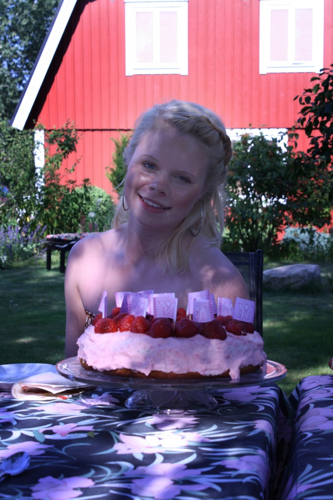 En bakfull Mathilda med sin favorittårta.