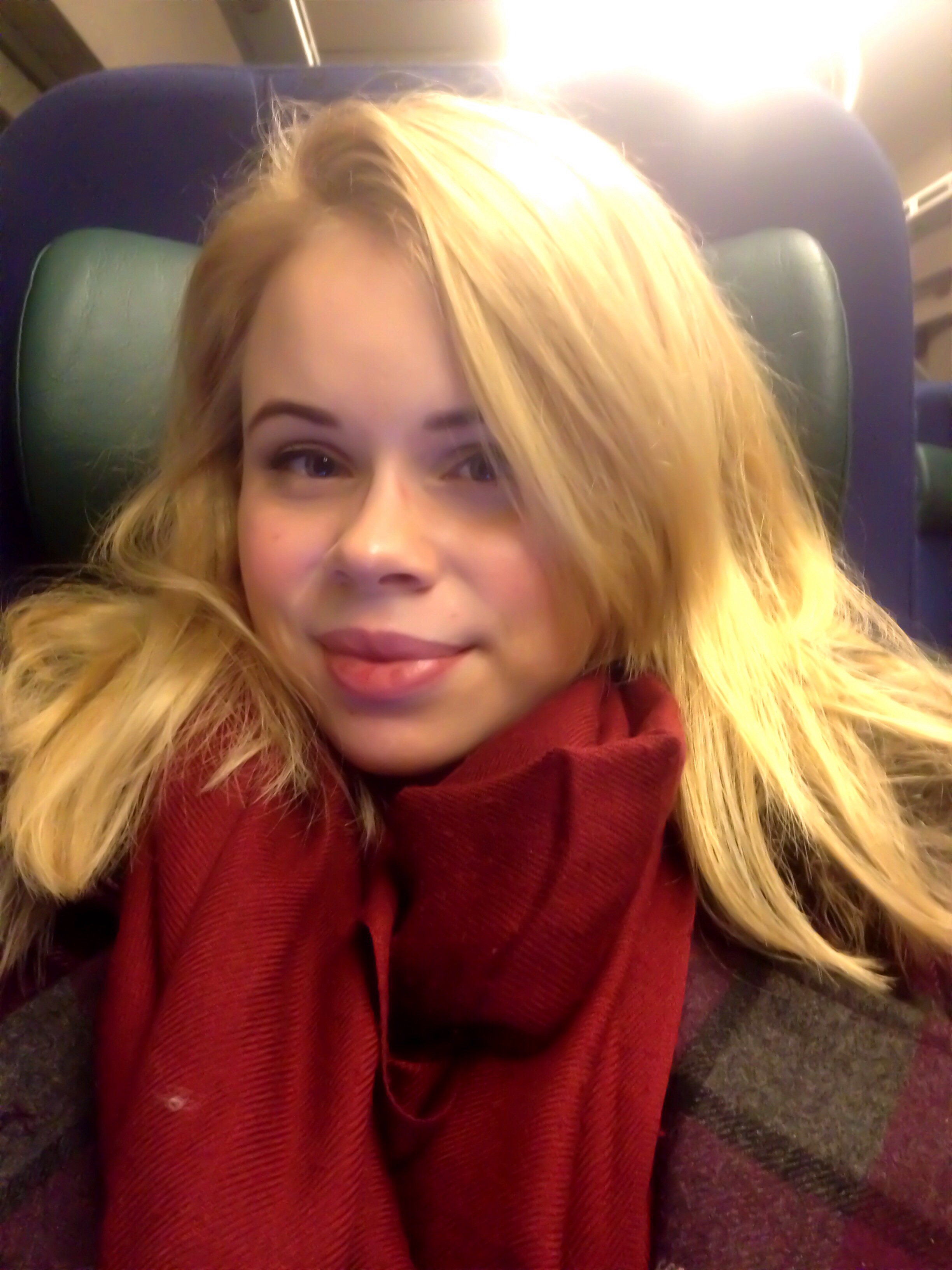 On my way to Porto!! Sitter just nu på tåget i Lund, det går om tio minuter, skönt att det är första station så tåget kom en kvart tidigt, slapp stå ute. Victor, Johanna och Sofie hoppar på i Malmö och resten möter vi upp på Kastrup. Jag är faktiskt ganska trött men han sminkat mig så jag inte ser trött ut, fast jag har röda ögon så ser ut som en knarkare istället, sak samma.