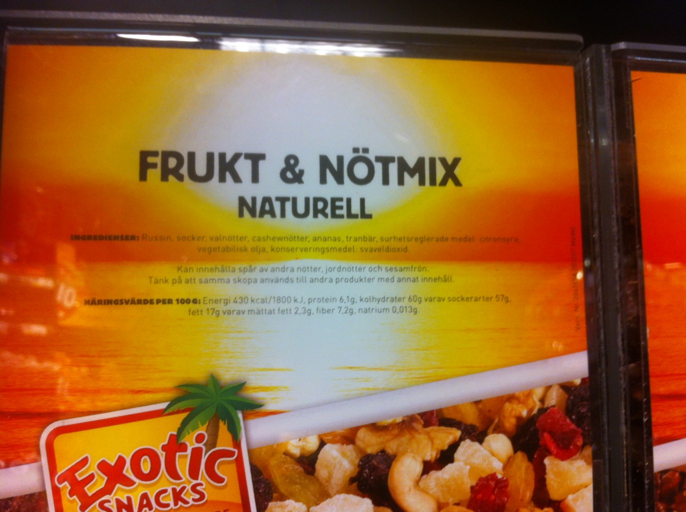 Hur gör man då för att inte bli lurad? Lätt som en plätt! Kolla innehållsförteckningen! Den ljuger aldrig. Naturgodis är inte det mest hälsosamma man kan äta, det vet ni säkert. Massor av både socker och fett i dom där underbara yoghurtgodisarna. Det finns dock många bra alternativ i den hyllan. Jag brukar köpa lite naturella nötter till mellanmål ibland. Ibland även lite torkad frukt. Om man har lite för bråttom är det dock lätt att luras.