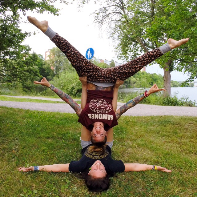 Nu på söndag kommer jag efter ordinarie pass att lära ut några acroyoga-positioner, för de som vill och vågar testa! Acroyoga är en lekfull yogastil där man gör positioner i par, kolla in bilderna nedan för några exempel. 🙂image image image