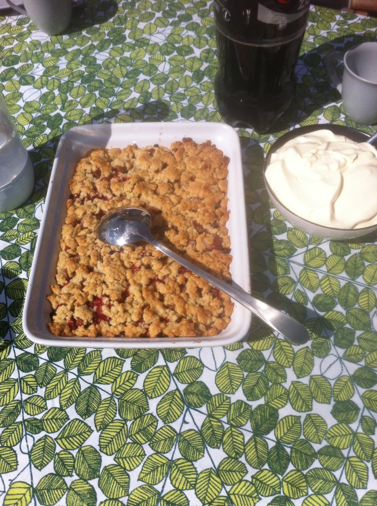 Paj med rabarber och smultron direkt från trädgården i sällskap med syster, svåger och fästman.