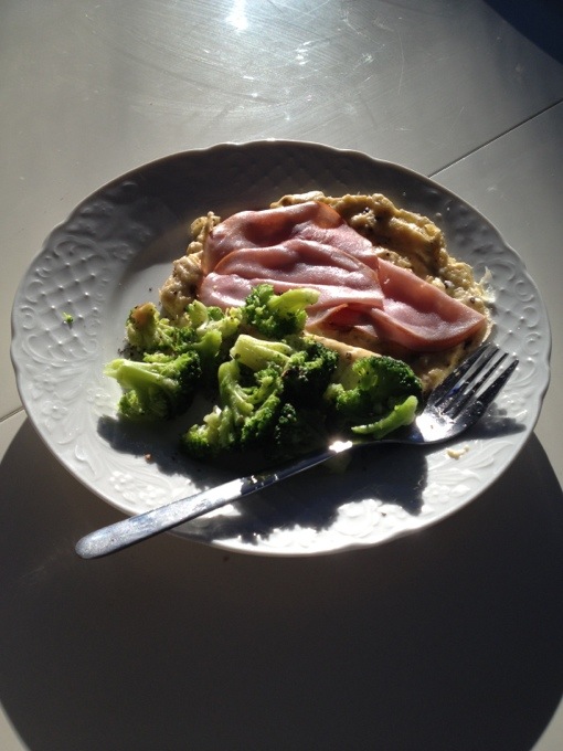 Lunch, mmh 24 feb 2013 av Lou Omelett med peppar, lite permasanost och skinka på toppen med broccoli. Mums. Nu är det bara mitt rum kvar!