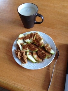 Jag stoppade in äpplena med kanelen på i mikron i några sekunder för att få dem varma. Det blev superduper, dock så har jag sån dålig koll på saker så jag kokade téet lite för sent, så äpplena hann bli kalla igen… Hahah.