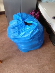 Det första vi fick göra var att skriva in oss och visa legitimation och lämna kontouppgifter och annat trams. Sedan visades vi till Logementet i Kasern 003! Strax därpå skulle vi hämta ut utrustning, och det var kanske det värsta jag gjort i hela mitt liv. En blå sopsäck fylld med utrustning som säkert väger 40 kg. Denna sopsäck var i princip omöjlig att bära, men fick hjälp med att lyfta upp den på axlarna och nacken.