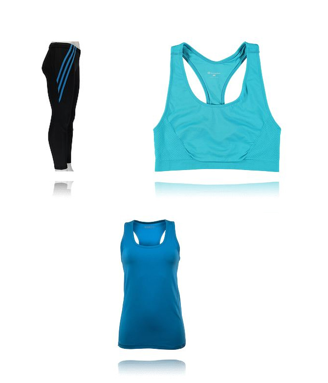 Att vaxa sig gjorde förjävla ont, men ska ändå testa det en gång till om lite drygt fem veckor. Dessutom så medför vaxningen att jag inte helst ska träna på 24 h, vilket jag egentligen skulle vilja göra för att fira att tentan är slut, men jag vill inte riskera några infektioner osv (pga känslig hud och bakterier vid träning så kan man få infektioner i hårsäckarna!). Därför har jag knåpat ihop två stycken önskeoutfits på gymmet!