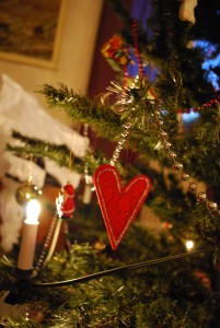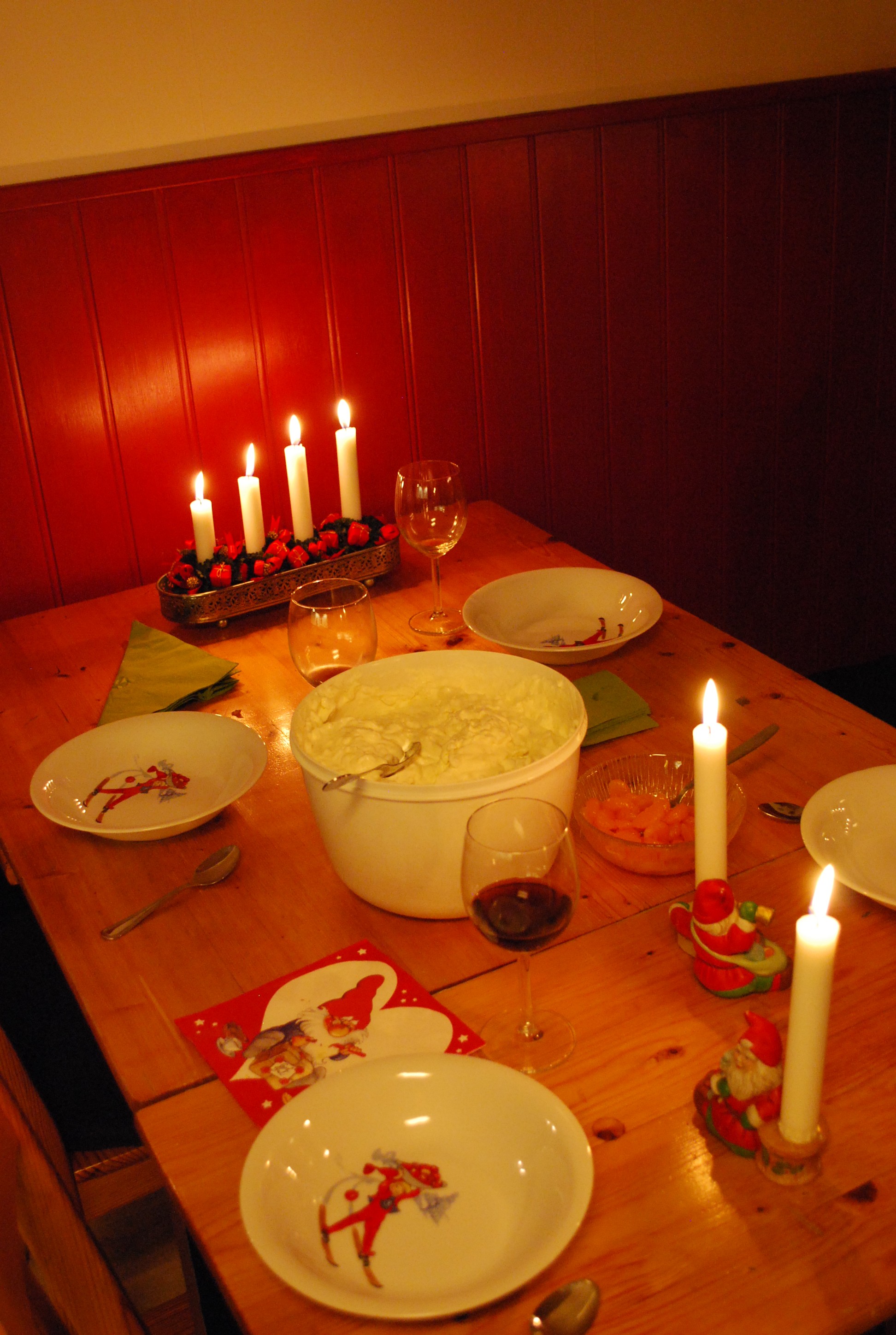 Till vänster lite hemmagjort julgranspynt och till höger det viktigast på julbordet – ris a la malta såklart!