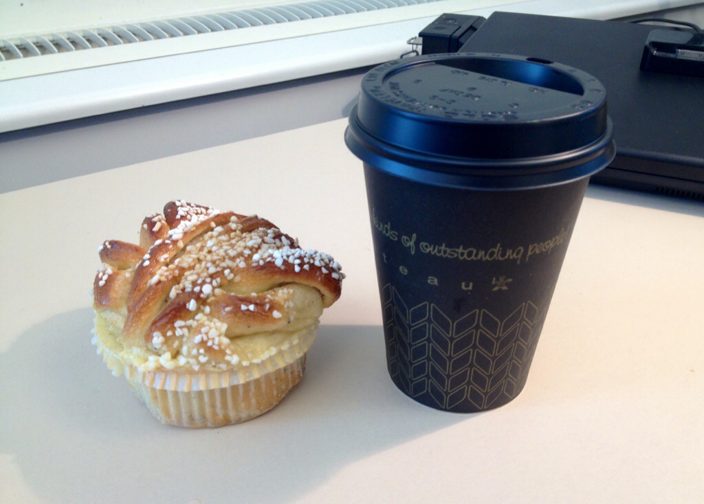 God morgon 🙂 Sitter på jobbet i skrivandes stund, har lite rast. Vatt nere på Gateau och köpt lite frukost. Visst är jag nyttig? Haha tog i alla fall en koffeinfri latte. Smakar ju exakt likadant som vanlig! Vill ju minska på koffeinet. För mycket koffein är inte bra om man redan är en stressad människa som mig haha.