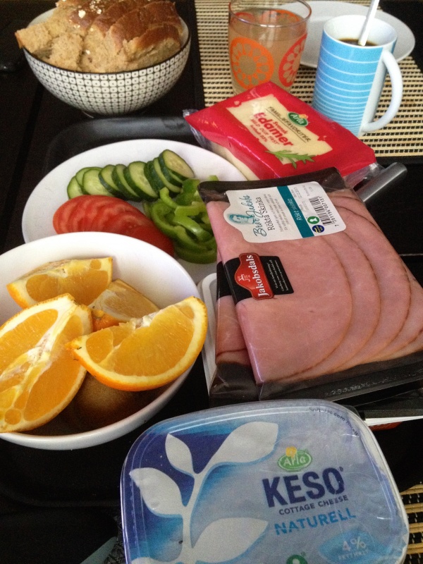 Sitter här i vardagsrummet med kaffet i knät framför datorn. Har fixat en lite frukost buffé och väntar nu bara tills att Juan ska komma hem (han är ute och rastar Nalla). Så blir det frukost framför tv:n 😀