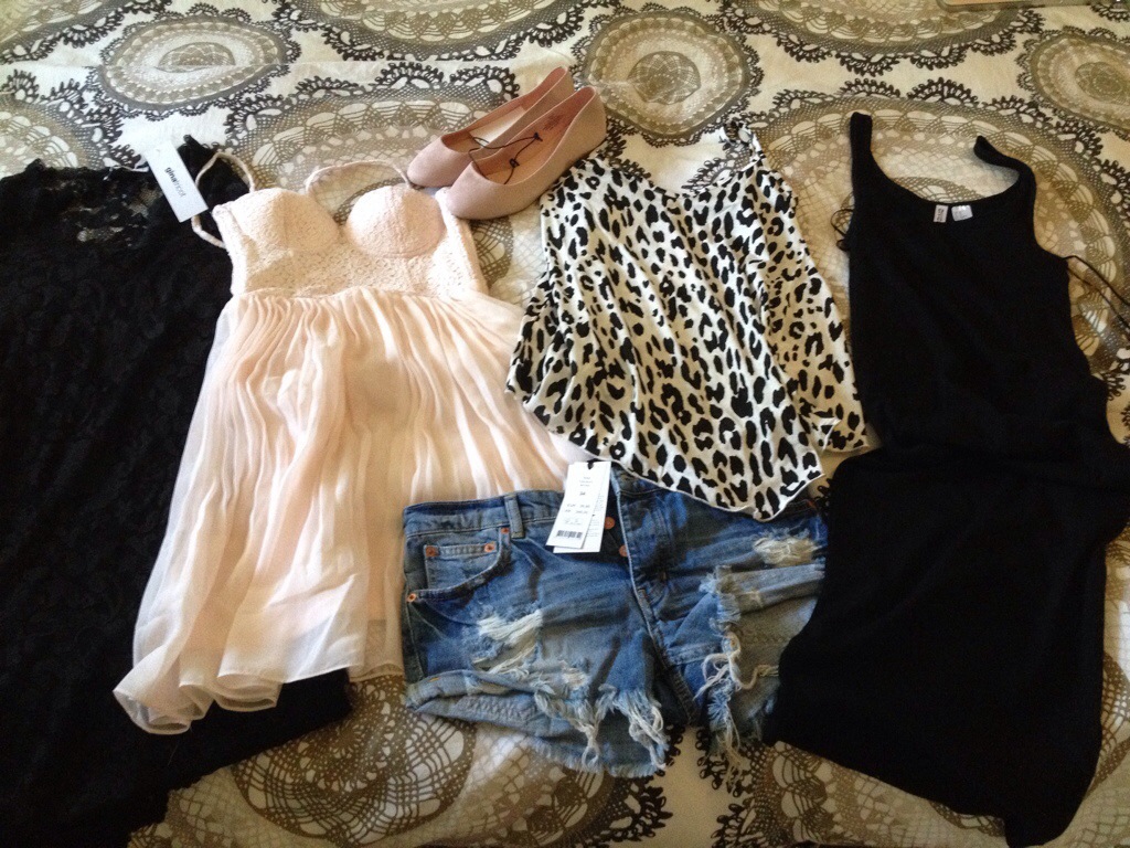 I morgon sticker vi! Har fixat och packat hela dagen, är helt slut nu. Hämtade paket också. Har knappt shoppat sen oktober förra året så nu unnade jag mig lite inför semestern. Var svårt att få med allt på bild men jag lär visa det som outfit i andra bilder 🙂