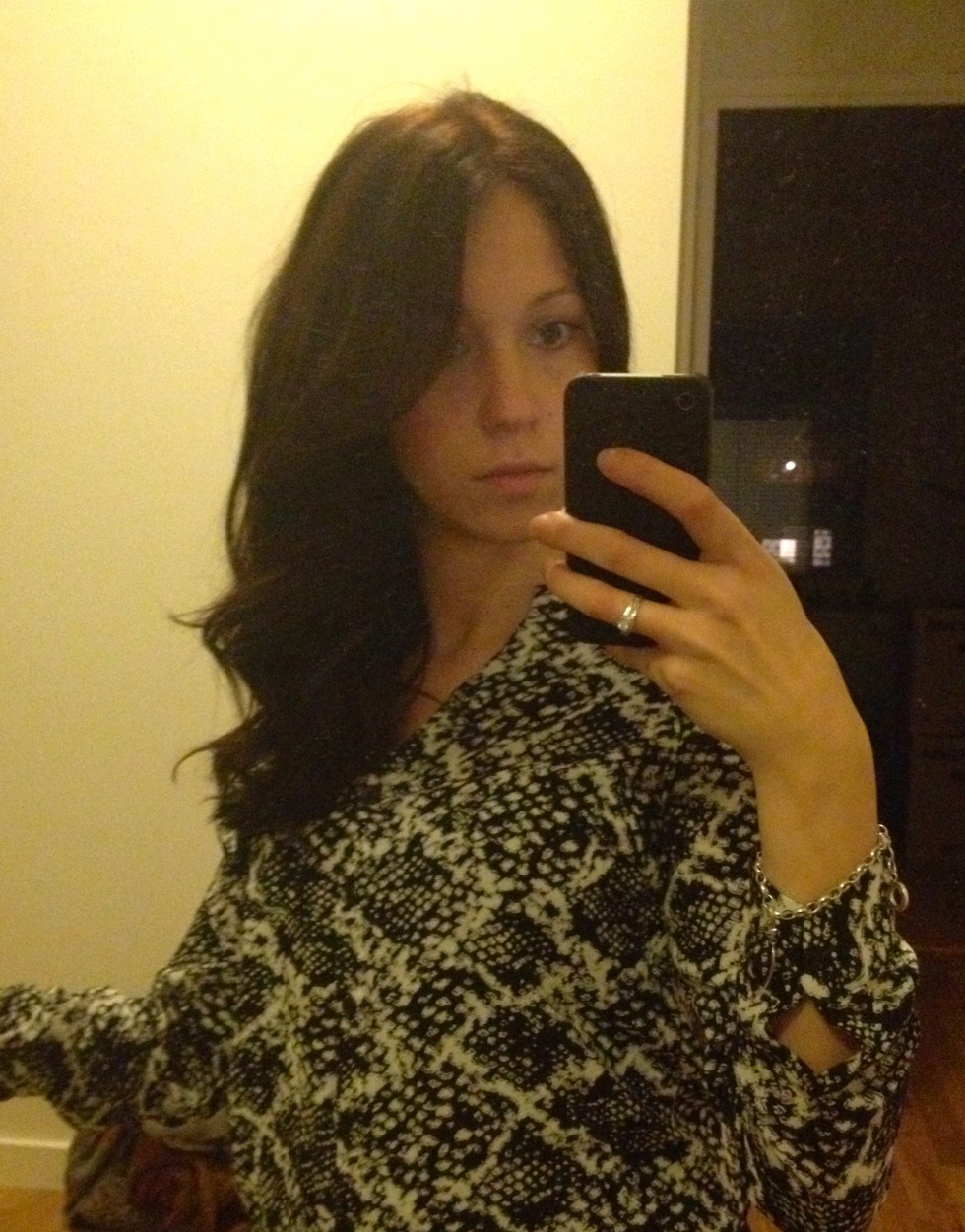 Och just det – håret! Blev chockladbrunt. Kanske lite mörkare än chockladbrunt. Men det är lika bra för färg håller inte bra på mitt hår. Kände bara när jag körde till frisören att jag verkligen var trött på ljust hår. Vill ha en större förändring, samtidigt som jag vill känna mig som mitt gamla ”jag”. Så det blev min naturliga färg, men något mörkare och i en mycket snyggare nyans. Blev ingen bra bild med så dålig belysning. Och shit vad smutsig min spegel är märkte jag nu! Har heller inte fått upp den än efter flytten, så det är lite svårt att fota när man står på knä på golvet haha men ska försöka få till en bättre bild i morgon i dagsljus.