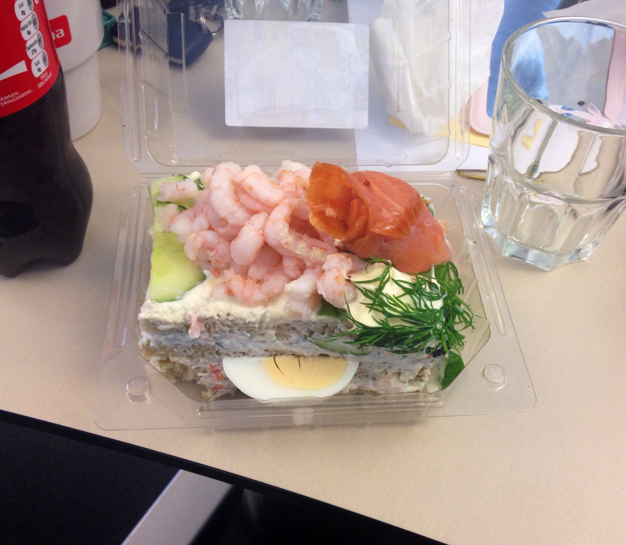 Idag har jag lunch ensam 🙁 Så köpte upp istället. Men unnar mig lite ändå. Denna smörgåstårtan är så sjukt god. Men laxen får jag slänga nu när jag är gravid. Och ägget. För ägg är äckligt.