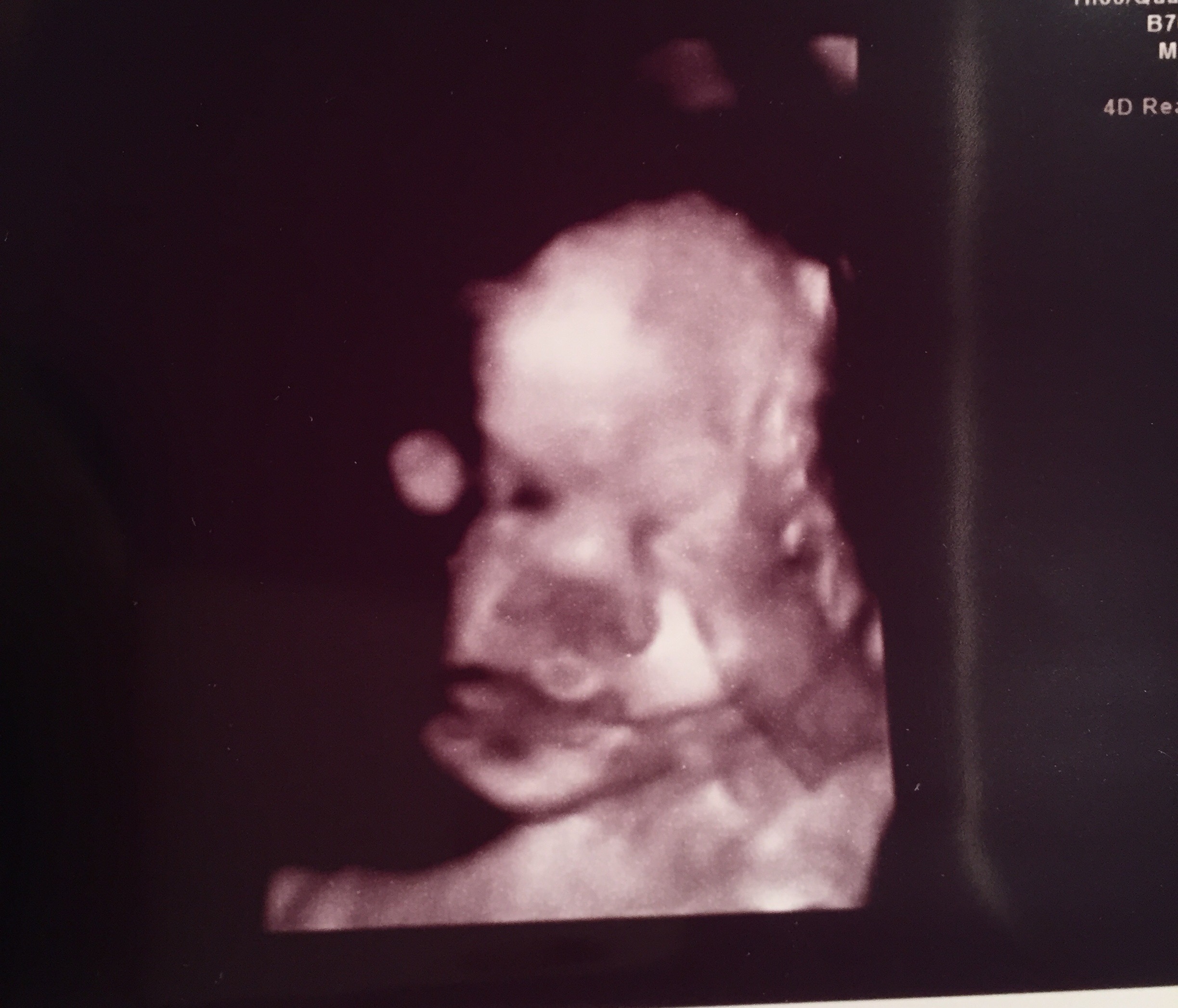 Skönt i alla fall att ha det överstöka och att höra att allt såg bra ut. Nu kan jag andas ut lite igen. Vi fick bild på vår lille. Häftigt med 3:d bilder, även om de ser himla roliga ut. Proportionerna är ju inte helt som i verkligheten och alla bulor och skuggor får bebisen att se ut som en liten potatis haha Men sjukt häftigt att se! Hon sa att han låg helt mosad med huvudet i bäckenet och att de inte var så lätt att få till en bild så här långt gånget men hon lyckades få fram halva ansiktet i alla fall. För övrigt låg han helt rätt och förhoppningsvis ligger han kvar så till förlossningen.