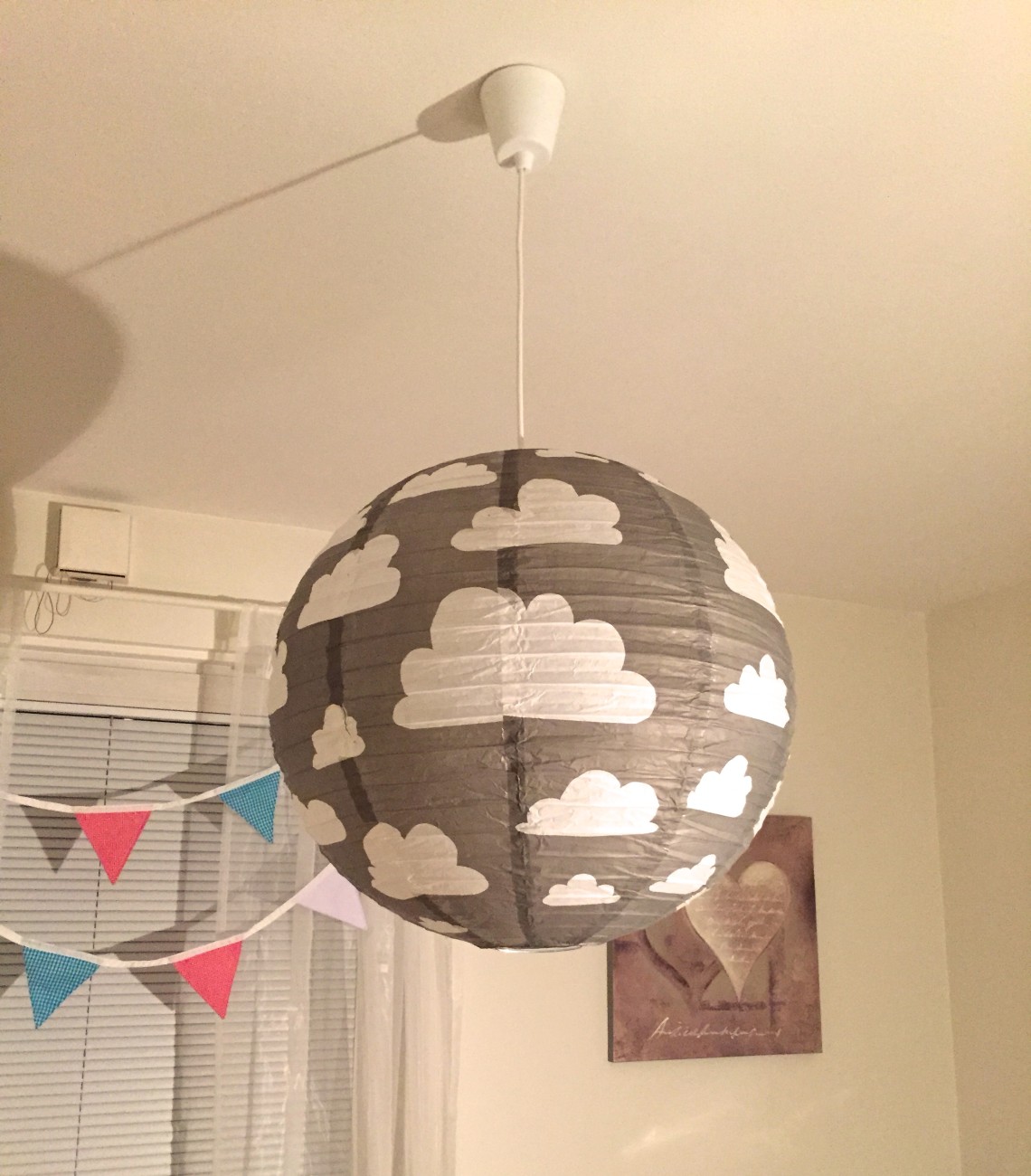 Juan satte upp lampan härom dagen. Älskar moln-motivet. Vill även tapetsera en vägg med samma motiv.