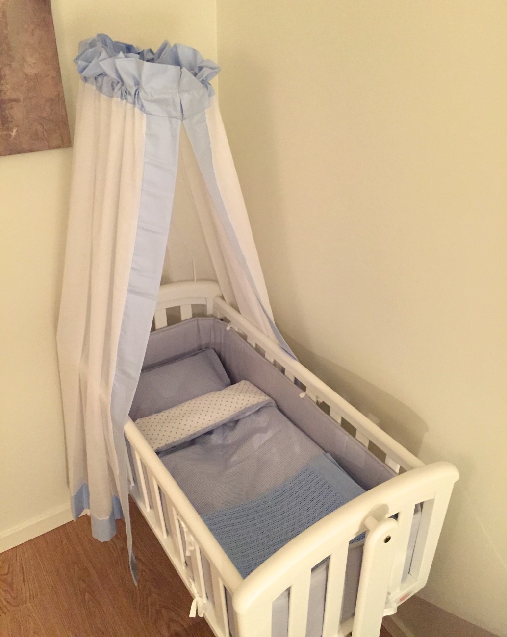 Vi fick den här fina lilla vaggan från Juans föräldrar. Tanken är att han kan sova i den på dagarna (den har hjul så man kan smidigt flytta den var som i lägenheten). På nätterna kommer han sova i den vanliga spjälsängen i vårt sovrum. Jag får faktiskt lite dåligt samvete när jag tänker på att han redan har två sovplatser… klart vill jag ge det bästa till min lille men samtidigt tänker jag på alla barn som knappt har något tak över huvudet. Världen är hemsk ibland med sina kontraster.