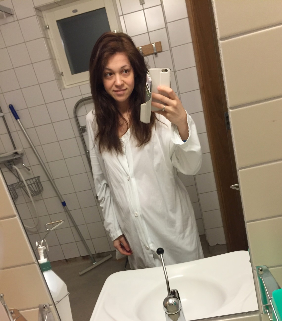 Första gången man lyckades stå upp efter förlossningen. Hur smärtsamma dessa dagar var kan jag inte förklara. Men underbara på en och samma gång. Ironin i vår värld.
