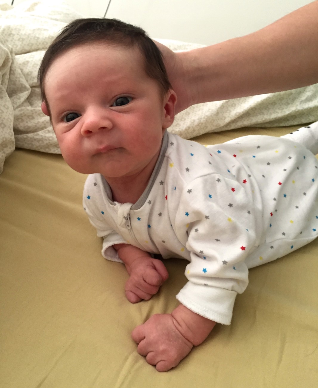 Så vad har hänt på dessa två veckor? Vad det gäller Gabriel har vi lyckats få till amningarna lite bättre. Fortfarande är det rätt så oregelbundet med tider och de skiftar från dag till dag men så är det nog med spädisar. Han sover i alla fall helt okej de flesta nätter. Han sover ca 3-4 timmar åt gången och amningen går smidigt, inget eller väldigt lite gråt efter och han somnar i princip direkt sen. Så man kan själv somna om hyfsat fort. Däremot på dagarna är det vääääldigt mycket amning, varannan timme eller oftare och efter det följer 20-30 min gråt (tror han har magknip eller så vill han fortsätta ligga vid tutten, vilket av det har jag inte klurat ut än). Men det går mycket lättare nu att lugna ner honom och få honom att somna i alla fall, så det är ju framsteg =) Utöver det så är han de sista 3 dagarna mycket mer vaken. Kanske 1-2 h åt gången. Och han testar att lyfta mycket på nacken. Det har han visserligen gjort sen dag ett på förlossningen. Han verkar ha en stark nacke. Det är bra för tydligen minskar det risken för plötslig spädbarnsdöd enligt BVC.