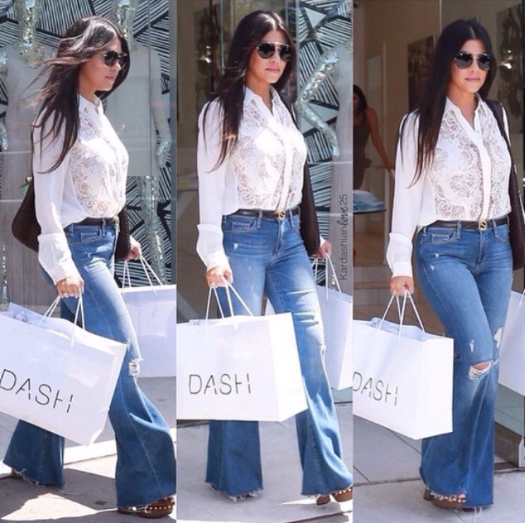 Hur snyggt är inte detta?! När jag var tonåring var det bara utsvängda byxor som gällde. Sen blev det inne med mer raka och slutligen med helt tajta vid ankeln. Och jag började verkligen tycka att utsvängda byxor var asfula. Men nu är de tillbaka – and I like it! Det ska ju matchas rätt och mer modernt så klart men visst är det snyggt?! Ska definitivt skaffa mig ett par! Fan jag ska nog sno hela stilen men blusen och allt!