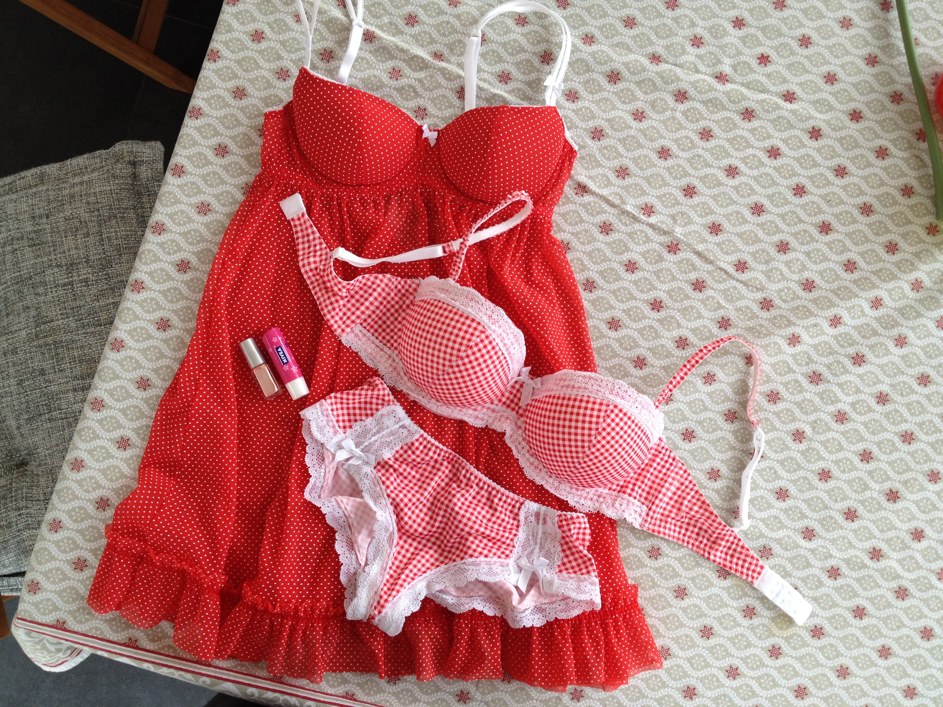 Jag har i alla fall köpt lite nya underkläderRR Grrrr haha! Hittade grymt söta grejer på H&M och var tvungen att investera i dessa 🙂 Har bara sånt här gulligt i min ”underklädsgarderob” 😉 OCH det passar perfekt till sommarn när man e brun med vågigt/lockigt strandhår! Har också köpt nytt nagellack och läppbalsam med skimrande färg.