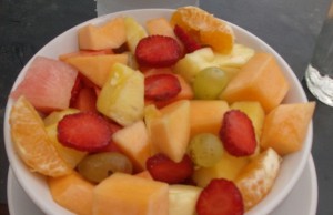 Fruktsallad – härlig lunch 22 mar 2012 av mssophie Sitter på en restaurang vid havet och äter en mumsig fruktsallaad. Perfekt här i värmen! Idag är det 33 grader varmt och solsken – så otroligt skönt.