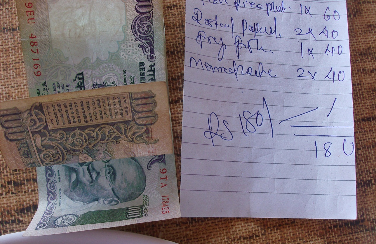 Åt faktiskt ganska mycket men notan landade på 180 rupier motsvarande ca 30 svenska kronor – grymt! Nu ska jag ta min scooter och resa till en annan liten by som jag inte minns namnet på. Haha!  Kommer nog gå bra att hitta ändå eftersom en kompis vet vägen dit.