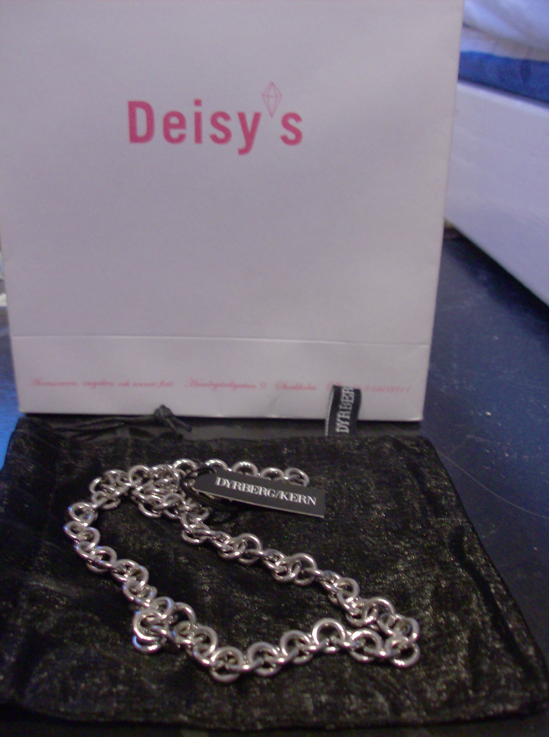 Köpte ett vackert halsband från Dyrberg/Kern inne på Deisy’s på Östermalm. Jag gillar verkligen att kedjan är lite grövre och inte lika nätt och fin som jag brukar ha. Den har lite unisex-känsla över sig som jag tycker var annorlunda mot vad jag brukar ha på mig. Den är i stainless steel och kostade endast 135 kronor på rean. Grymt!