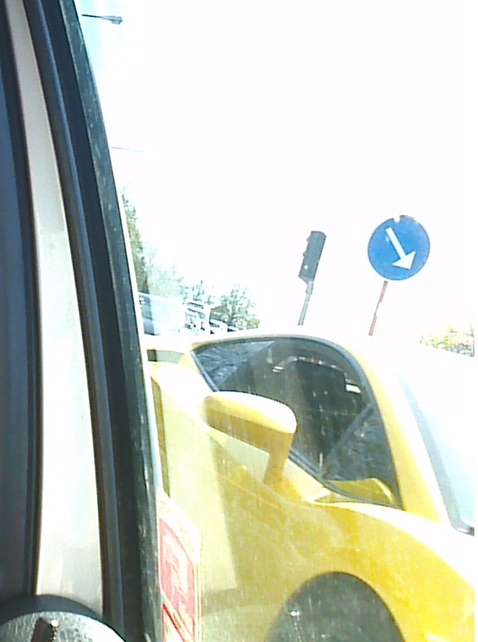 I förmiddags var jag ute och åkte i bilen, var inne i stan och gick lite ärenden. Det vill säga lämnade tillbaka lite kläder som inte var lika snygga när jag provade dem hemma som när jag provade dem i butiken… När jag åkte tillbaka hem fick jag syn på den här snygga bilen i backspegeln. Var ju tvungen att fota men med tanke på att jag körde samtidigt så blev inte bilderna sådär superbra. Men bättre än inget!