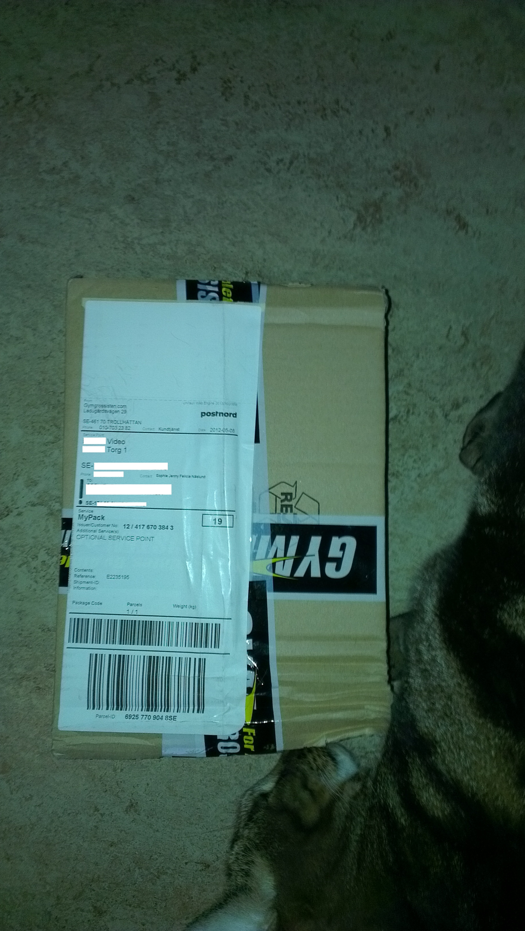 Min katt Tindra tyckte paketet var otroligt spännande