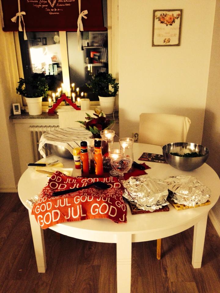 När man väll kom till Mette så va alla andra där I TID ^^dom va så underbara som väntade på oss ( mig och julia ) för att börja äta.. otroligt snällt. Middagen va sjuk go och efter rätten va mumsig och som vanlig så ville jag njuta av maten så vart klar en halvtimme efter alla andra 😛 hehe