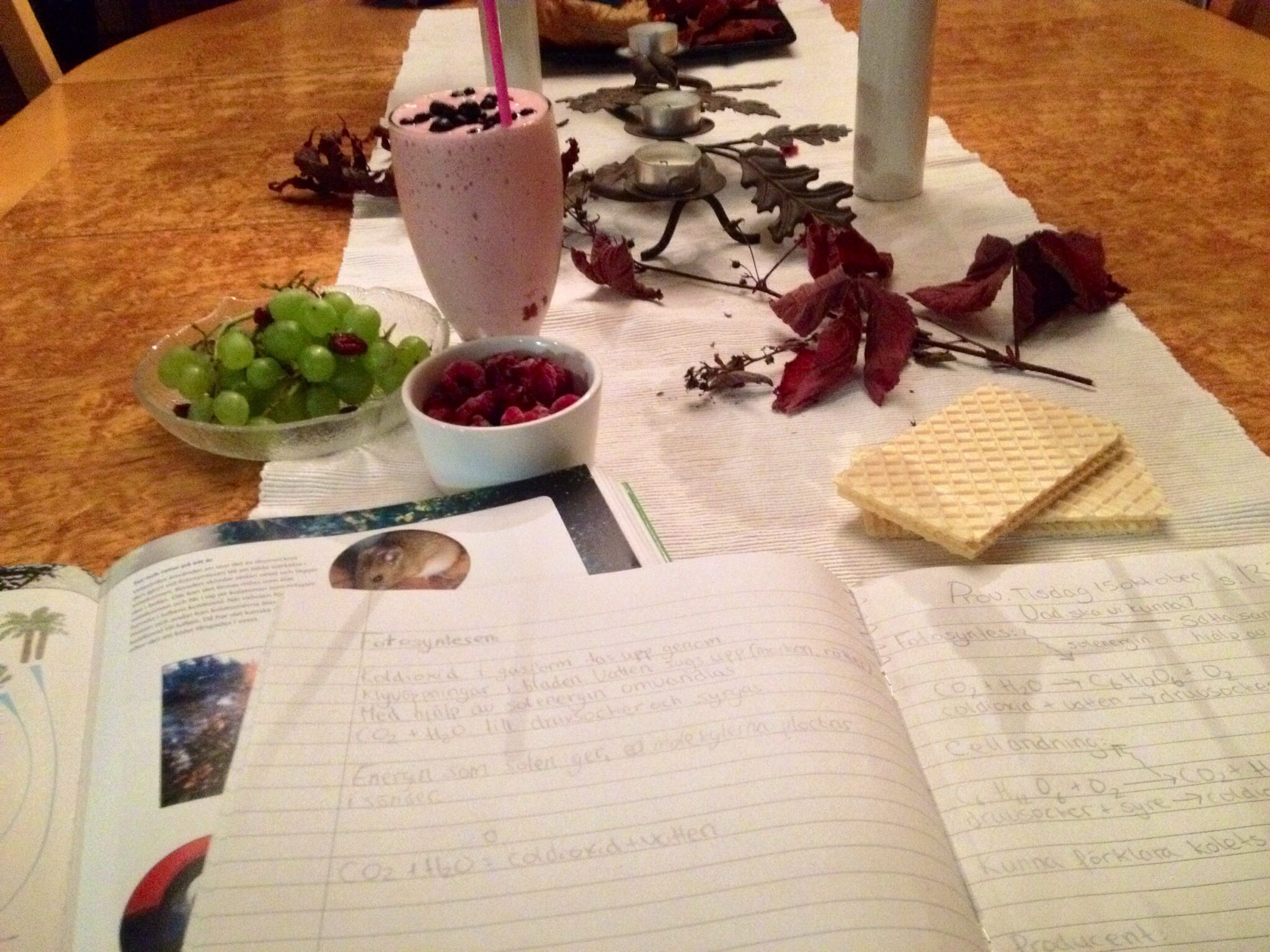 Efter över 4 timmars pluggande & en lååång skön dusch.. Fixar jag smoothie & gott.. Och sätter mig vid böckerna igen. Vill verkligen bli godkänd på detta prov, känns som att de ska gå bra. Men man vet ju aldrig. Kanske sitter där imon som ett stort frågetecken.