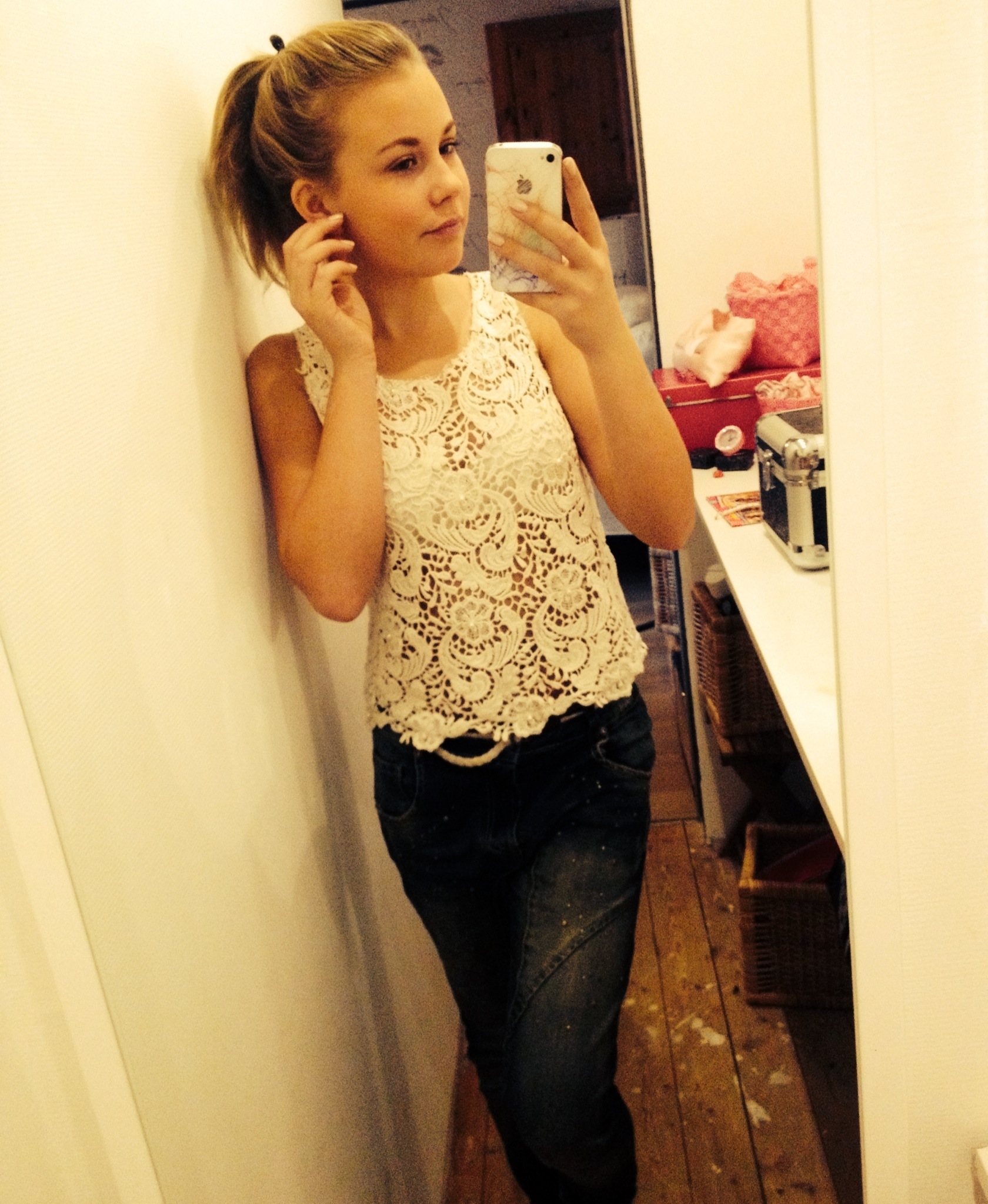 Outfit – Middag 9 november, 2013 av My Love Johansson Valde en sjuk chill stil idag Mina please jeans och ett hållit linne. Uppsatt hår och lite smycken på de.