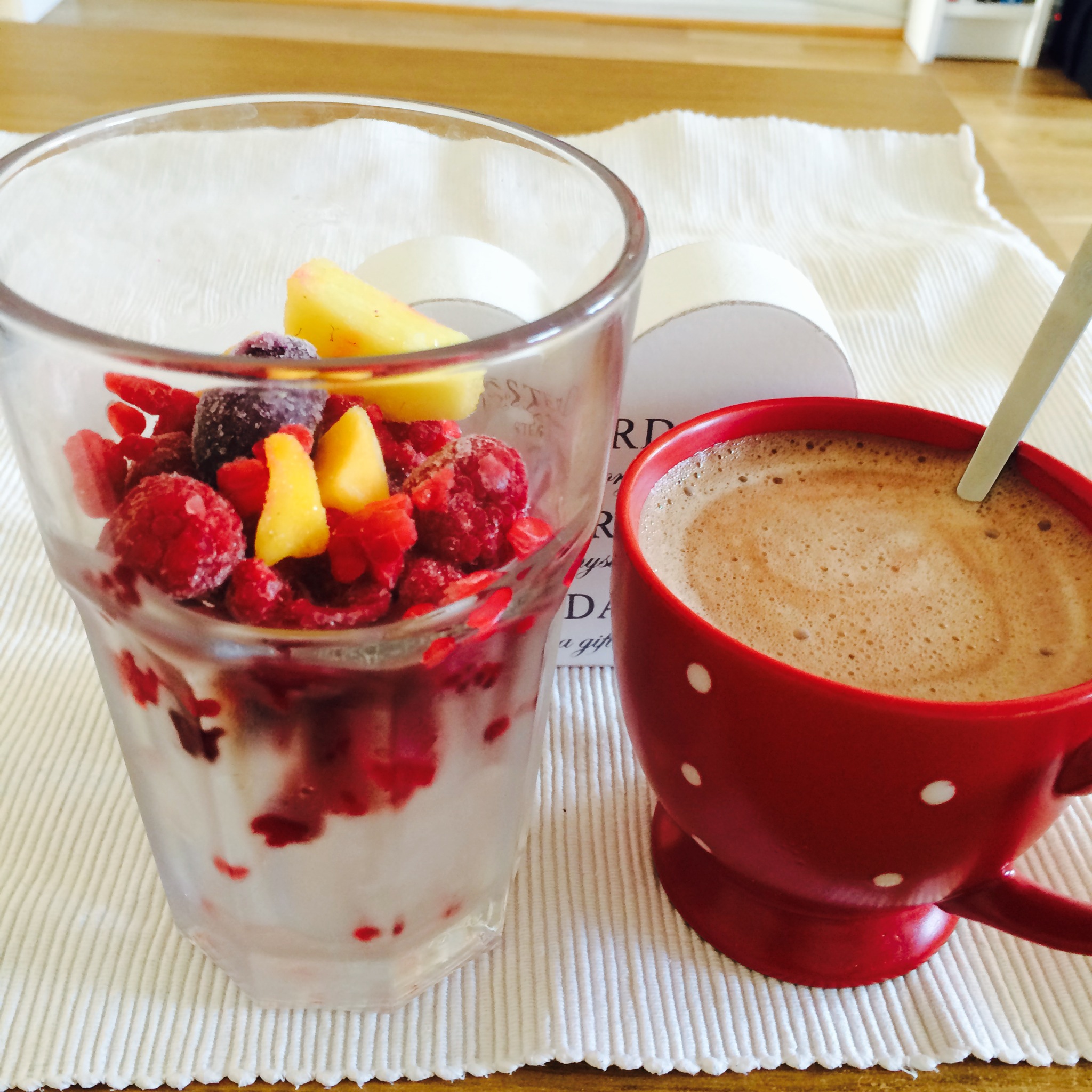 Imorse ringde klockan 07:20, då var det dags för Emelie att gå upp & sen börja jobba. Jag tog lite bär, is & en varmchocklad & la mig i soffan. Sova skulle jag inte göra… Men jag somnade ändå nån timme. Typiskt!