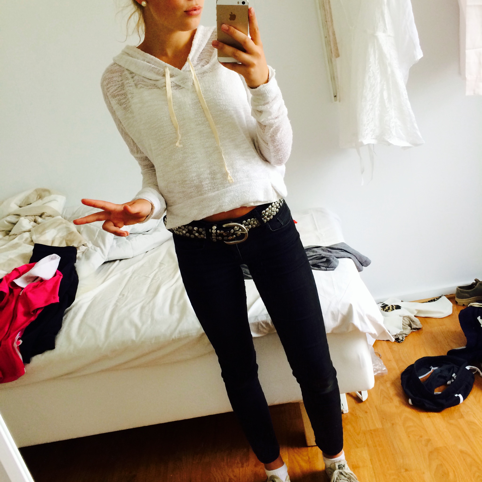 Dagens: Linne från Bik bok // Kofta från Hollister // Jeans från T O S // Skor converse // Skärp från Chelsea.