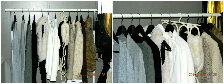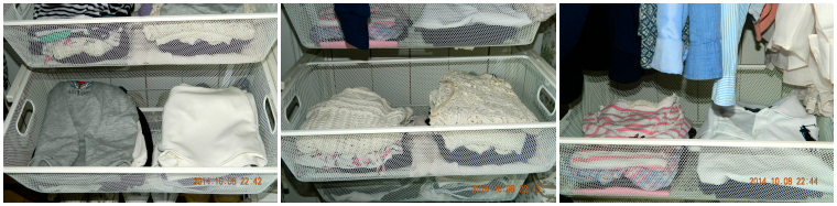 – Inne i garderoben, liggandes i backar. Linnen, tishor, shorts, kjolar” –